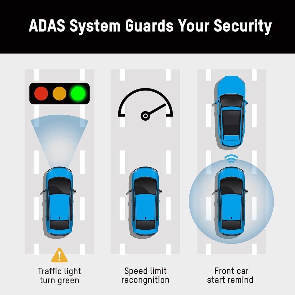 كاميرا سيارة متطورة بدقة 2K+ مع تنبيهات مسار وتحذير من الاصطدام، ومراقبة أثناء الوقوف.
