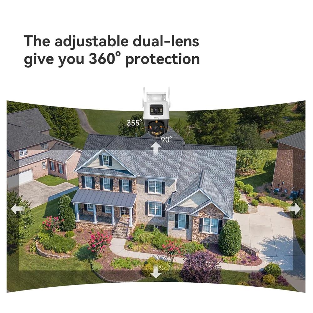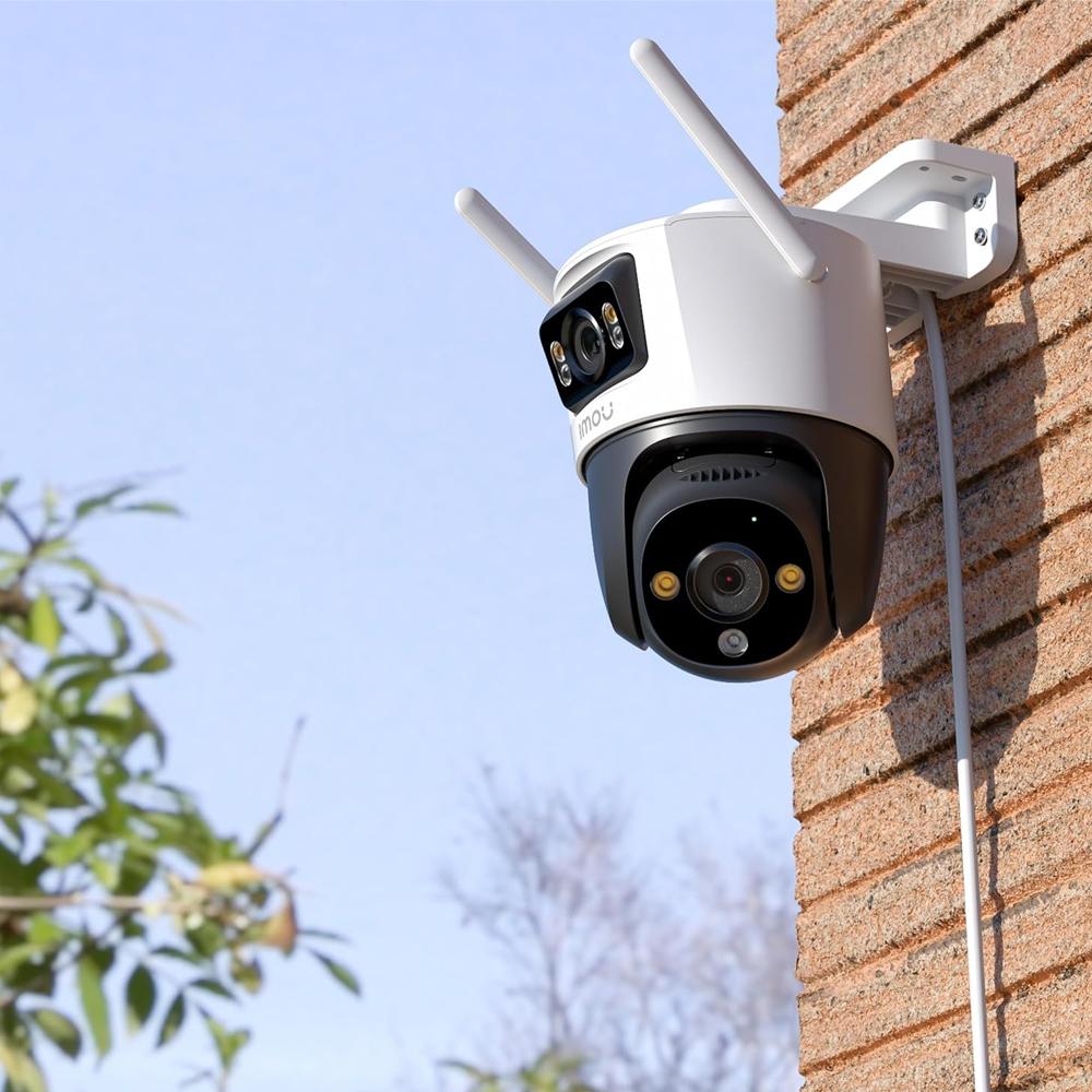 The IMOU Ranger Dual 10MP (5MP+5MP) outdoor Wi-Fi camera delivers advanced surveillance with dual lenses for a combined 10MP image. The fixed wide-angle lens and PT movable lens provide full coverage, while four night vision modes ensure clear visibility in complete darkness. It features AI detection for humans and pets, smart motion tracking, siren & flash alert, two-way audio, and supports MicroSD (up to 256GB) or cloud storage. Weatherproof IP66 design makes it ideal for outdoor use.