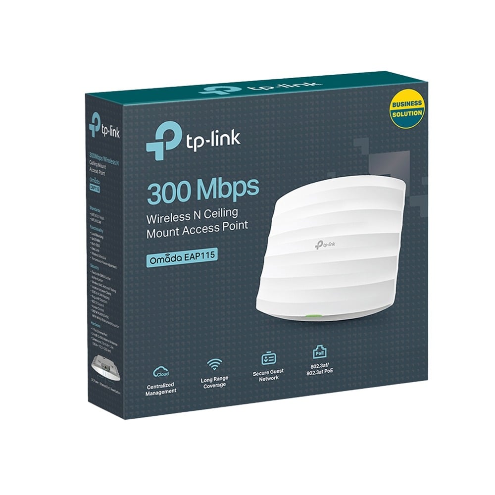 The TP-Link EAP115 AC300 Wireless Access Point delivers reliable Wi-Fi coverage for small offices and businesses. Designed for wall or ceiling mounting, it offers centralized management via the Omada Controller and professional-grade wireless performance with secure access.